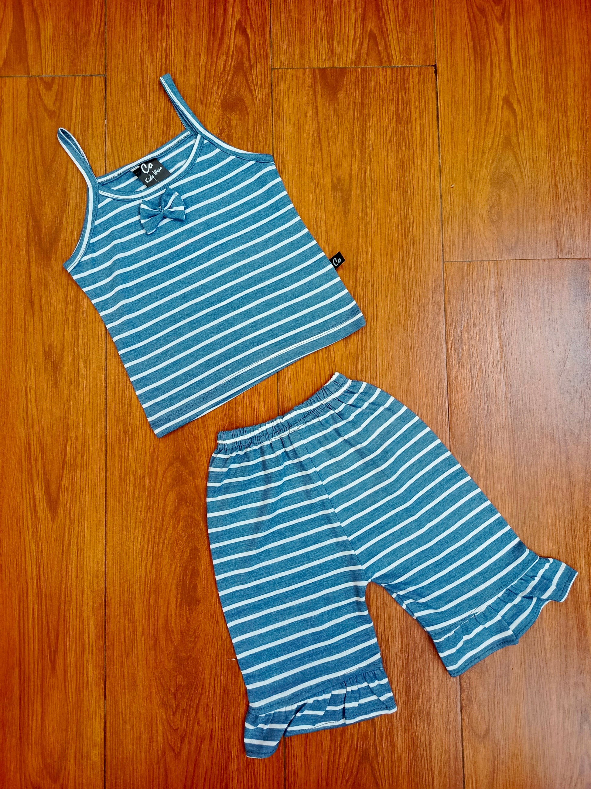 Blue stripes tanktop capri suit