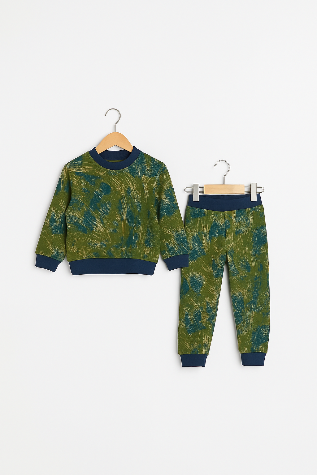 Our Green tie & dye tracksuit is made with a kids printed fleece fabric that is comfortable and cozy. Its unique design features a green dye & tie dye pattern to ensure your kid stands out. Perfect for all occasions.
