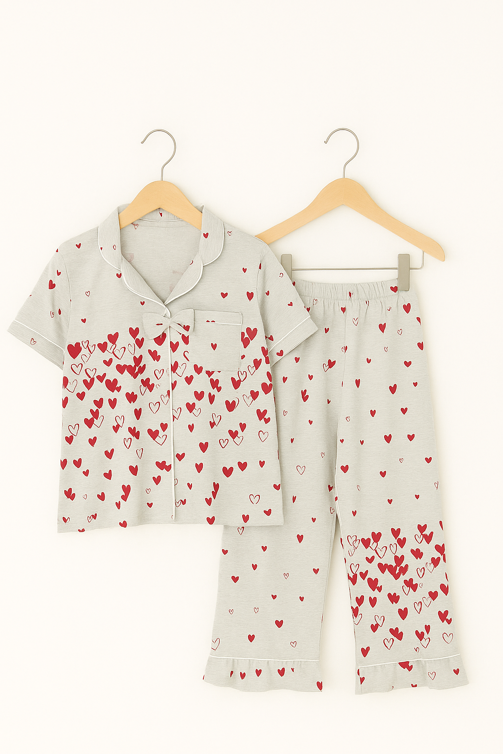 Experience ultimate comfort with our Grey Heart Ladies PJ's. Made from soft jersey fabric, these PJ's will keep you cozy all night long. Perfect for lounging or sleeping, these PJ's are a must-have addition to your wardrobe. Enjoy a peaceful sleep with our Grey Heart Ladies PJ's.