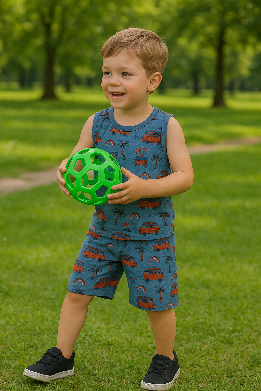 Expertly designed for your little one, our Mid Blue Beach Sando Suit is made with soft jersey fabric for ultimate comfort. Perfect for a day at the beach or pool, this suit will keep your child feeling cool and stylish. Trust our expertise in children's wear for this must-have addition to your child's summer wardrobe.