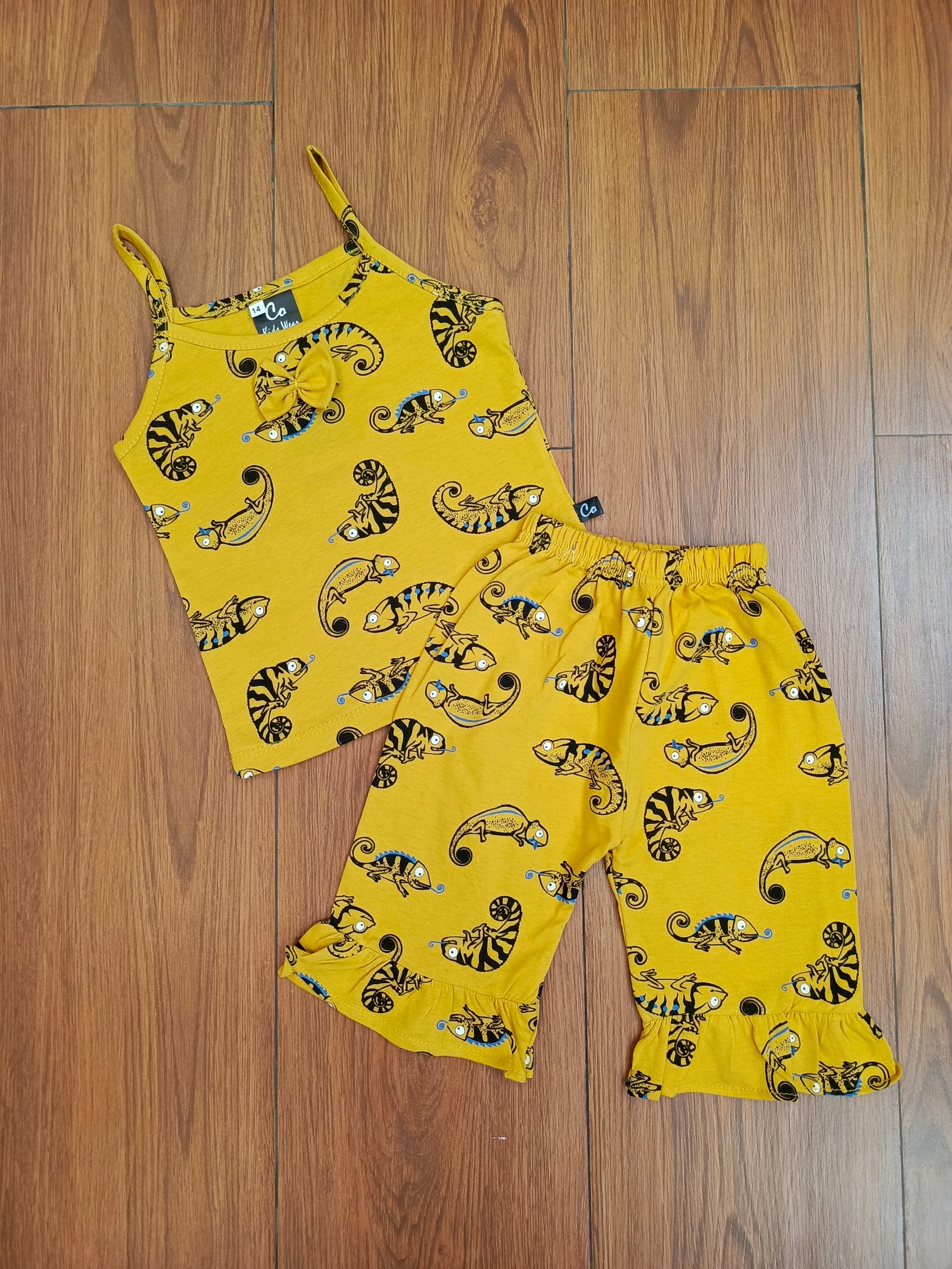 Mustard yellow tanktop capri suit