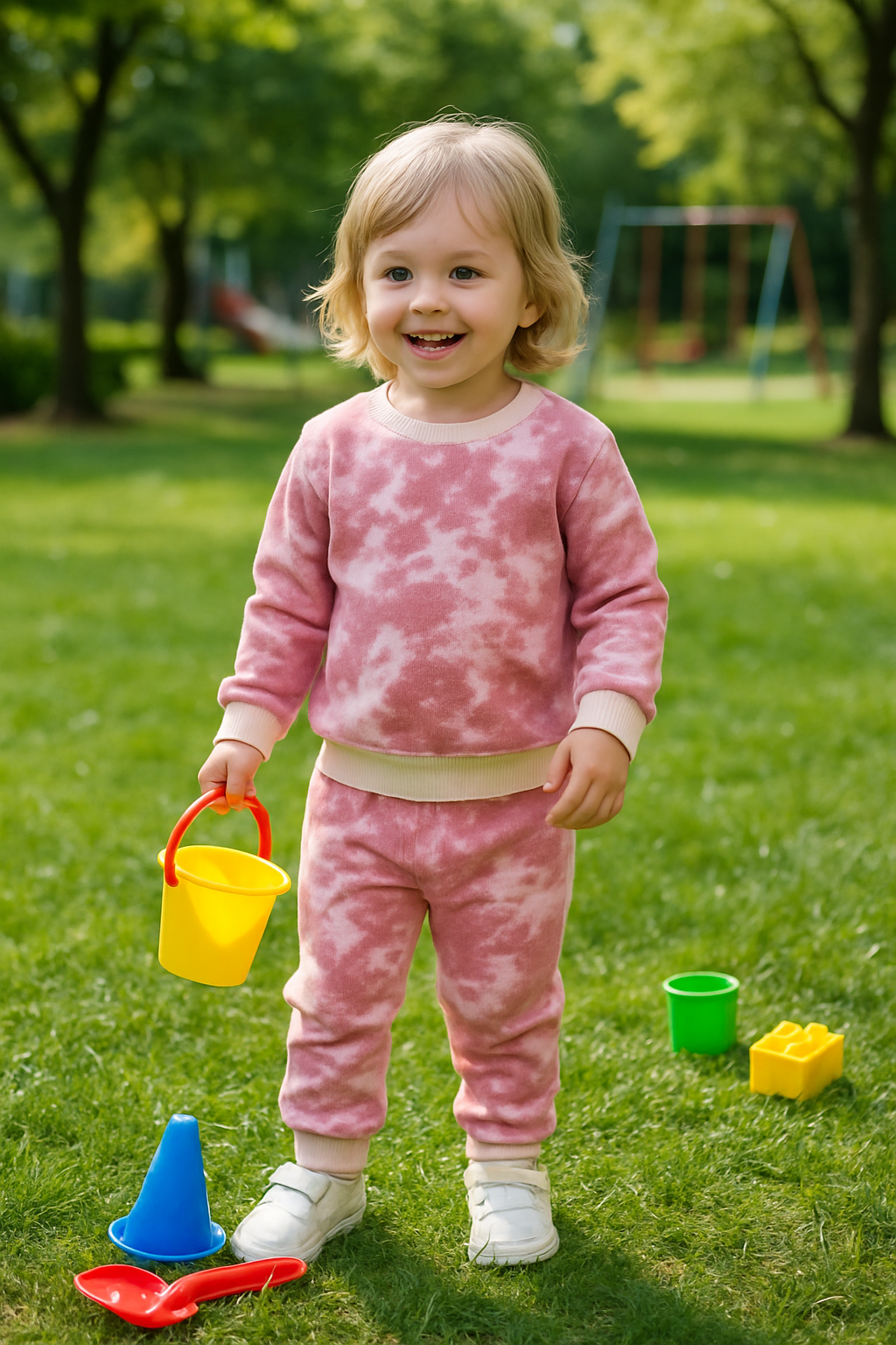 This purple tye&dye fleece tracksuit is made of fleece fabric, making it the perfect choice for staying warm and comfortable in the colder months. The soft and cozy material provides ultimate protection against harsh weather, allowing you to enjoy outdoor activities without feeling the chill.