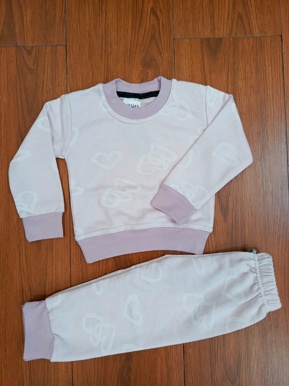 Enhance your child's comfort and style with our Pink Heart Kids Track Suit. Made from soft fleece fabric, this track suit features a charming pink heart design, perfect for any fashion-forward kid. Keep them cozy and trendy with this must-have set!