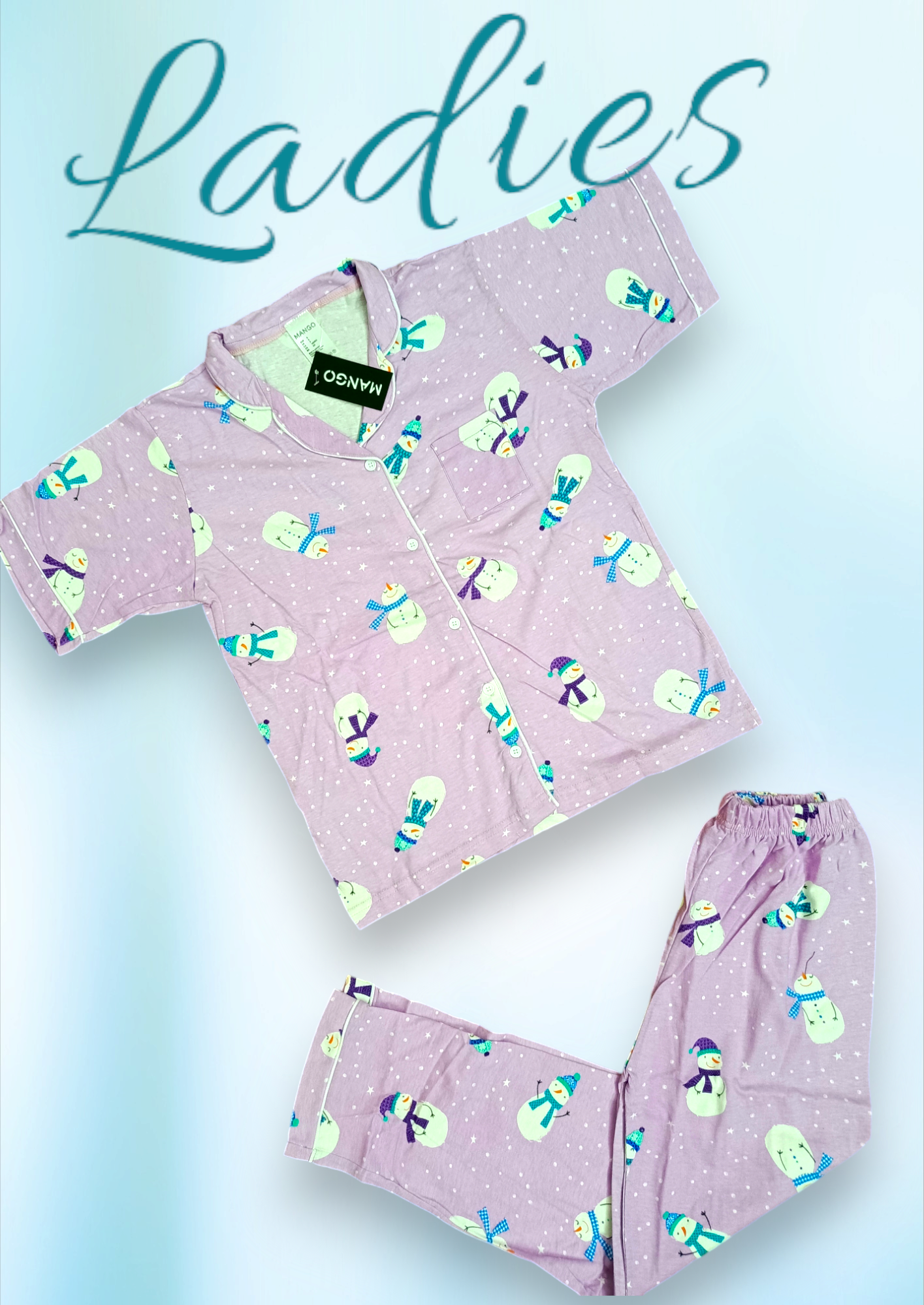 These purple pajamas for women feature a soft jersey material and half sleeves for optimal comfort. The lightweight fabric is perfect for a good night's sleep and the stylish design adds a touch of sophistication to your bedtime routine. Stay cozy and fashionable in these ladies pj's.