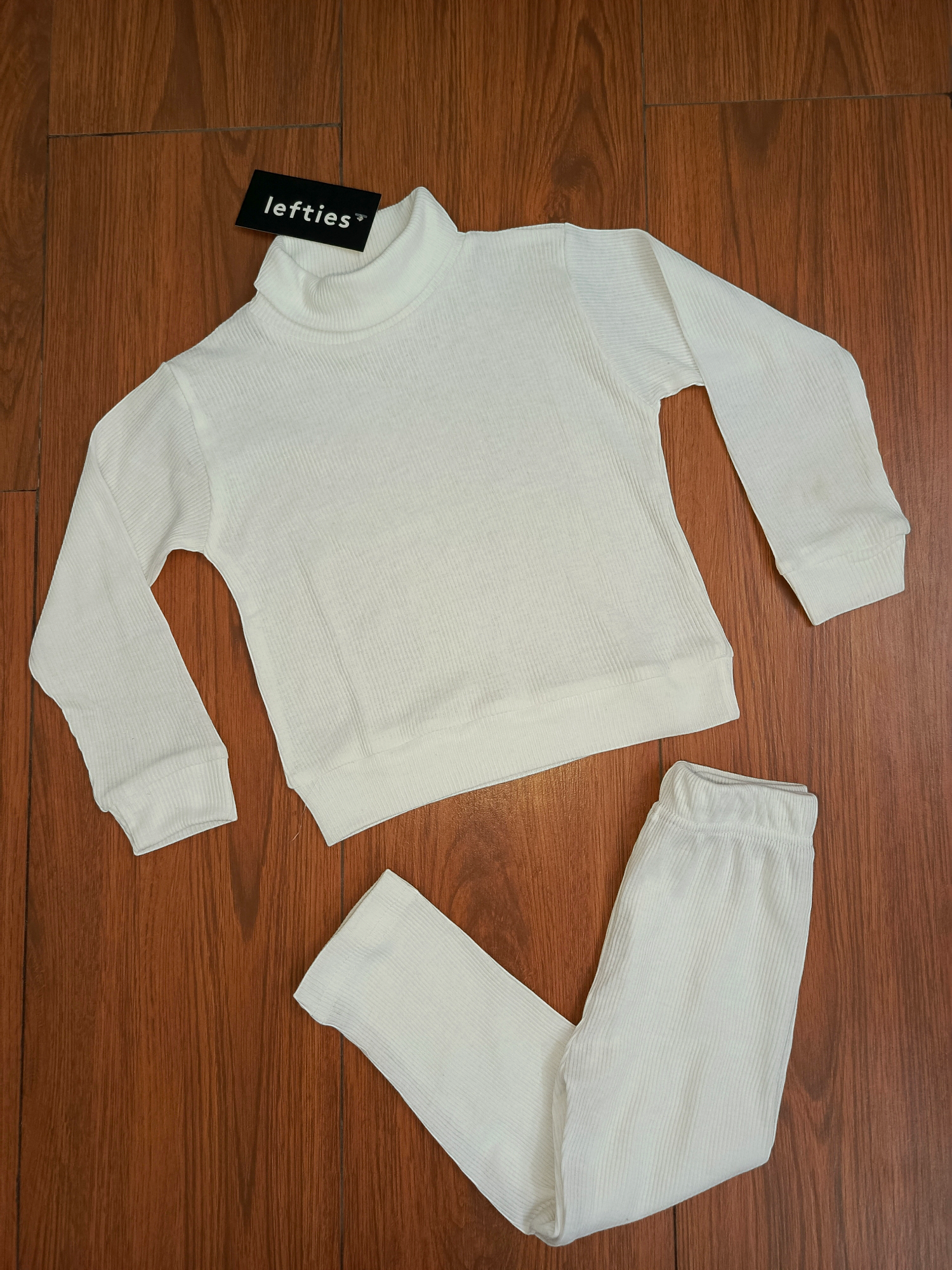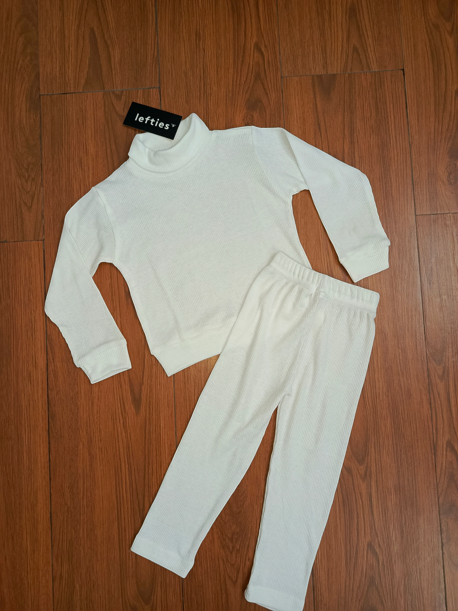 This premium quality white rib hineck tracksuit is specifically designed for kids. Made with rib fabric, it provides a comfortable fit and maximum flexibility. The perfect choice for any active child, this tracksuit offers both style and functionality.