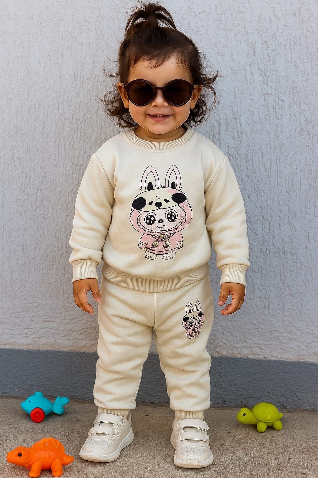 This kids track suit, made with comfortable fleece material, is perfect for active children. The breathable fabric provides warmth and flexibility, making it an ideal choice for sports or playtime. Keep your little one stylish and comfortable with this off-white Labubu track suit.