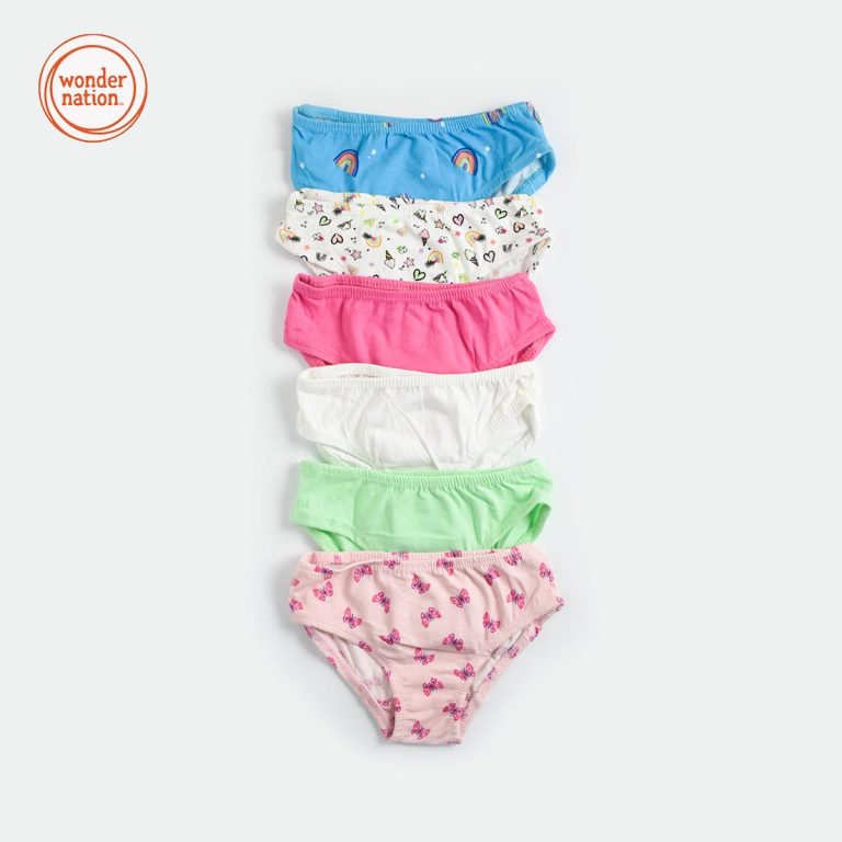 Wonder Nation’s Brief Panty 6-Pack feature a fun and feminine assortment of colors and prints. With each pair made of super soft cotton, these briefs maximize comfort for your little girl all day long!
