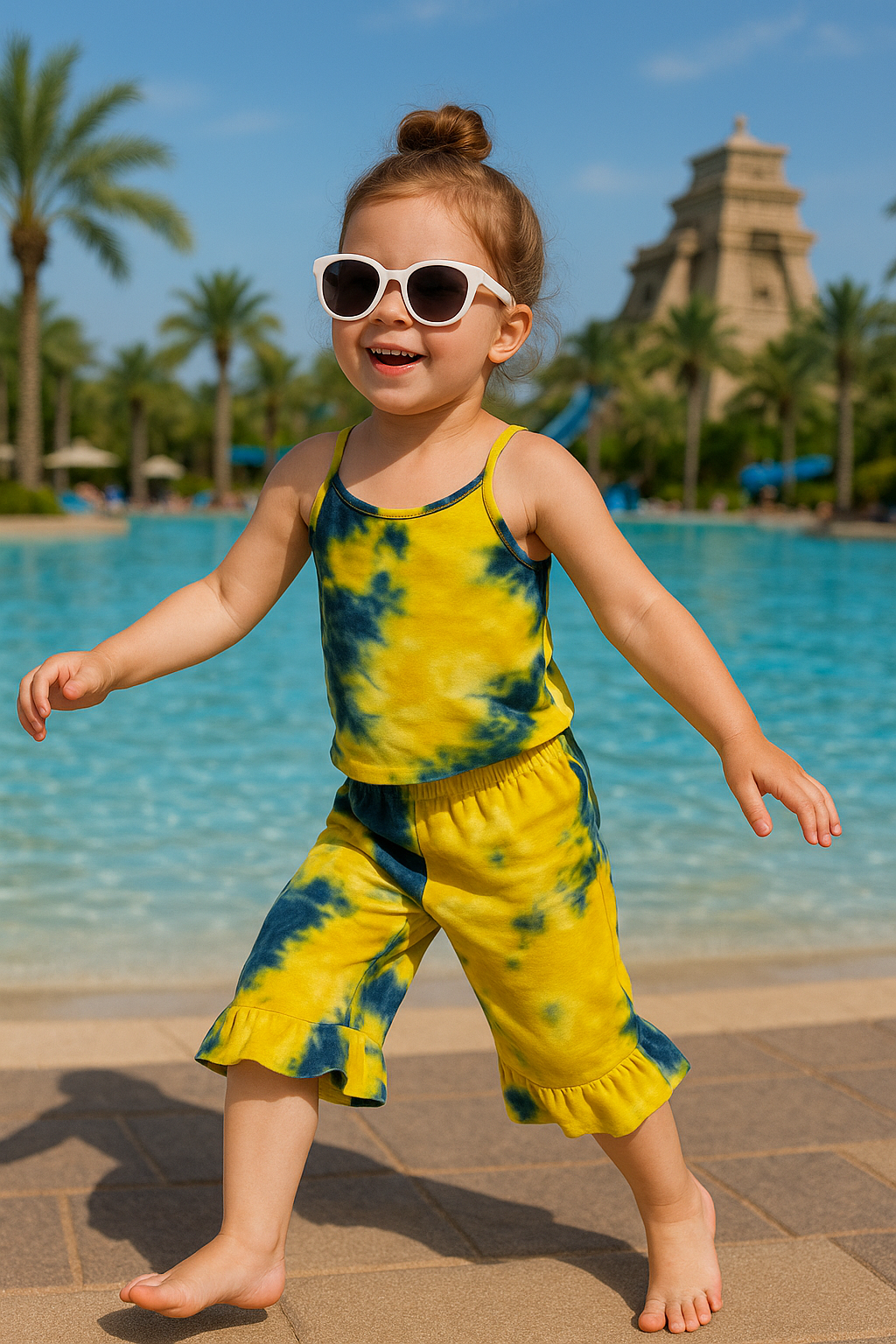 Stay cool and stylish this summer with the Yellow Blue Tye & Dye Tanktop Suit. Made from soft fabric, this suit is perfect for hot weather. Enjoy the benefits of comfort and fashion all in one.